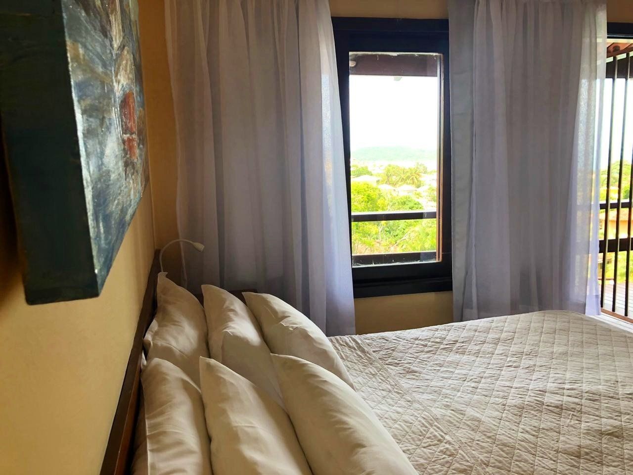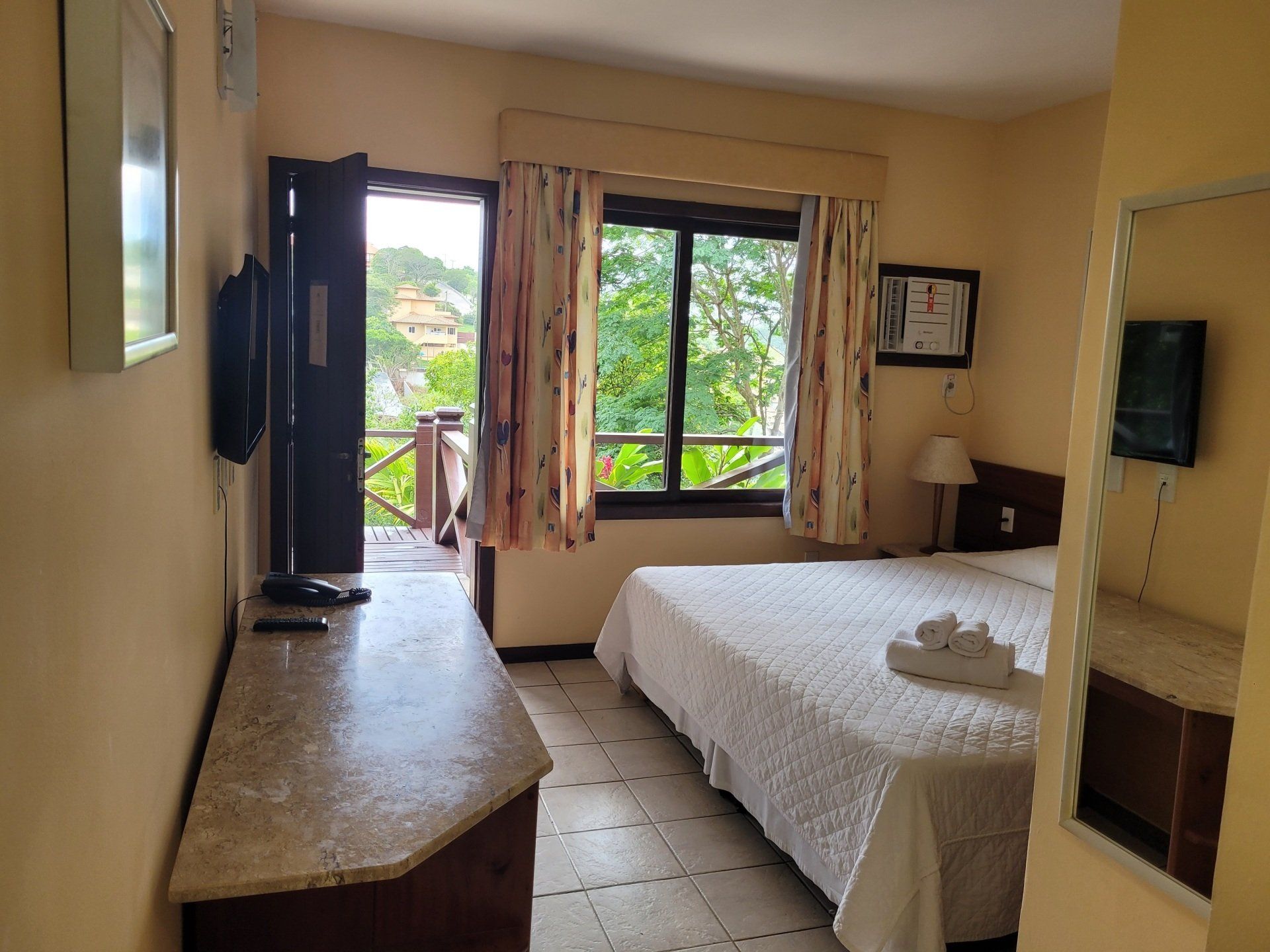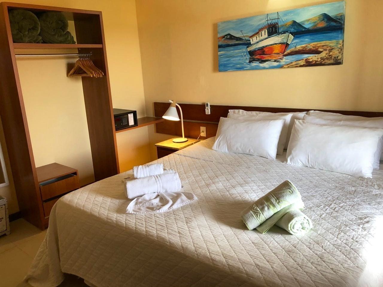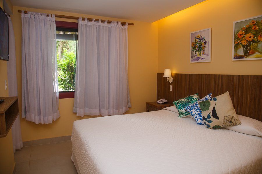 O hotel possui 58 confortáveis quartos, entre duplos, triplos e quádruplos. A grande maioria dos quartos estão reformados, possuem varanda com rede e/ou cadeiras e vista para o verde ou distante mar.